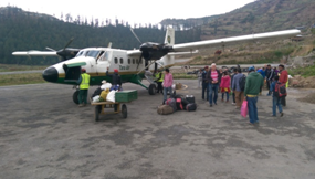 Van zaterdag 23 april t/m zondag 1 mei 2016 waren Peter en ik, samen met onze Paula en Trudy, op bezoek in Simikot. De dag daarvoor waren we naar Nepalganj gevlogen, via onze contactpersoon Bishnu naar Siddharthahotel gereden, aldaar overnacht en de volgende ochtend vroeg met de jeep weer terug naar Nepalganj Airport. Daar ontfermde Bishnu zich opnieuw over onze bagage, regelde de boarding passes en zorgde ervoor dat wij het eerste vliegtuig naar Simikot hadden. Wij kwamen daar ’s morgens als gevolg van heiig weer overigens 2 uur later aan dan gepland, namelijk om 09.30 uur. Heiig weer was er ook de oorzaak van, dat wij niet op donderdag 28 april maar pas op zondag 1 mei terug konden vliegen naar Nepalganj/Kathmandu.