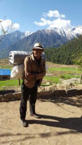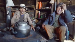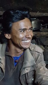 We willen hier zeker Hom Bahadur, de tweede porter, niet vergeten. Onderweg is gebleken dat hij een talentvolle danser is, zelfs in Michael Jacksonstijl, een goede kok en vooral een heel lieve attentvolle jongeman. Als wij, totaal uitgeput, ons ergens neerzetten, kwam hij voorzichtig vragen of we iets wilden drinken of een koekje wilden. Zijn betoverende glimlach kregen we er telkens als extraatje bij. Ach, voelt zo goed… die kleine gebaren, zeker op momenten dat wij ons helemaal belabberd voelden.