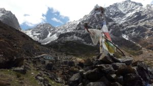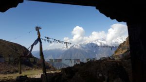 En laten we zeker de masten met Tibetaanse vlaggetjes niet vergeten… gevleugelde zegeningen gedragen door de wind, dwalend tussen die onbeschrijfelijk mooie Himalaya’s. Om stil van te worden…