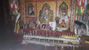 Het bijzondere aan het verblijf bij deze familie was de met pracht en praal ingerichte huistempel met brandende yakboterkaarsjes die het licht van Boeddha tot in onze kamer lieten schijnen.