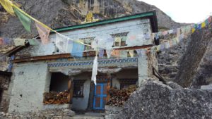 Naast het klooster bevond zich de oorspronkelijke kloostergrot, zijnde de grot van de grote leraar Milarepa die door zijn wonderbaarlijke kracht alle demonen wist te verdrijven. Hij kreeg ons aller eerbetoon en in monnikenbanken hebben we beiden een tijdlang gemediteerd… en Boeddha zag dat het goed was.